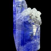 Glassy translucent green crystals of diopside measuring to 1.7 cm in size on matrix with prismatic glassy crystals of tanzanite. A neat combination piece that is in great condition.From: Weinrich Minerals