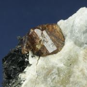 Zircon crystals on/after Siderite with Orthoclase, Quartz, and Aegirine