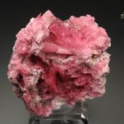A gorgeous specimen of rhodonite crystals from the famous San Martin Mine, Chiurucu, Peru. This locality produced some of the finest rhodonite pieces in the world. It displays rich pink colored blades of rhodonite with a good shape. The crystals grow in radial sprays. Above are seen micro quartz crystals which sparkle nicely. In superb condition. On acrylic base.,	Striking rhodonite!,	 Data last checked on 31st Oct 2025