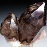 Glassy, doubly-terminated Phenakite crystal, 1 cm wide, with Smokey Quartz crystals.From: Marin Minerals