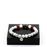 Ruby from Mogok, Burma, Myanmar + Red Agate + Moonstone + Howlite Bracelet 8 mm Beads.