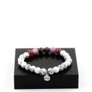 Ruby from Mogok, Burma, Myanmar + Matte purple Mica + bicolor Tourmaline + Howlite Bracelet 8 mm Beads.