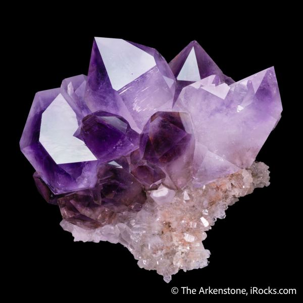 This is a Quartz var. Amethyst on Quartz from Jackson Crossroads Amethyst Mine, Jackson Crossroads, Wilkes Co., Georgia, USA. A very fine cluster of amethyst crystals from the world-class Jackson Crossroads Amethyst Mine near Atlanta, home to the finest amethyst in the USA and, at their best, a contender for worldwide status.Data last checked on 5th Apr 2026