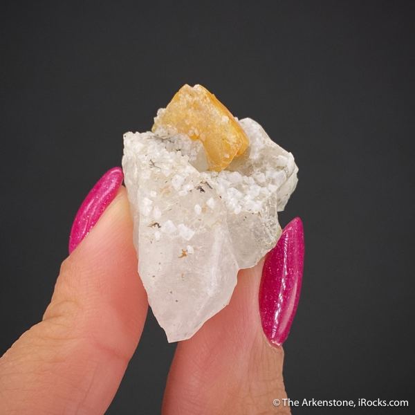 This is a Fresnoite on Analcime from Junnila Mine, New Idria Mining Dist., San Benito Co., California, USA. Fresnoite is an extremely rare, and luckily beautiful, mineral species that contains Titanium - much to your surprise when you look at it and see a translucent, juicy butterscotch-colored crystal!Data last checked on 1st Feb 2026