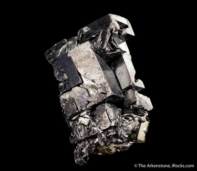 This is a Galena on Pyrite from Huaron Mine, Huayllay dist., Pasco prov., Pasco, Peru. This is a machined-looking geometric cluster of Galena from the Huaron Mine in Peru featuring several metallic gray crystals in dramatic parallel growth.Data last checked on 28th Jan 2026 - specimen may no longer be available