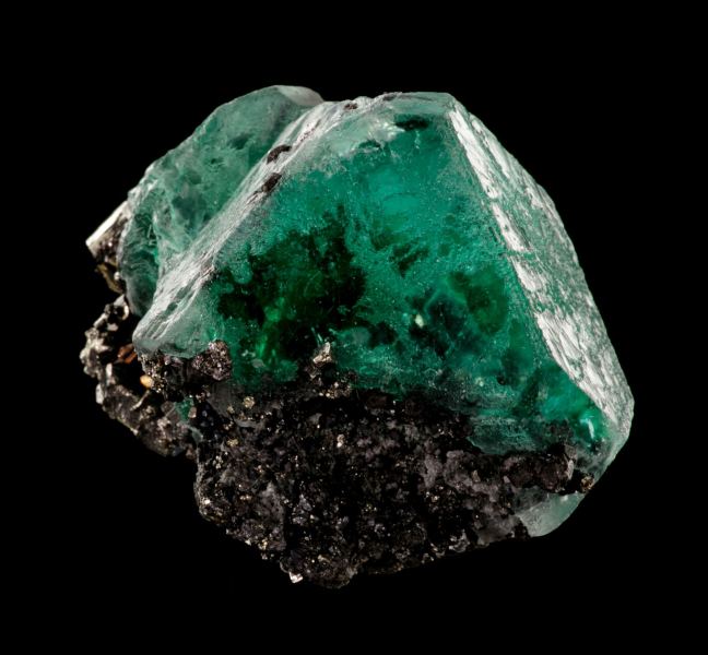 This is a Fluorite and Pyrite from Cerro de Pasco district, Pasco Province, Peru. A pair of deep emerald-green, cuboctahedral Fluorite crystals are dominant on this miniature, and paired with associated sulfide species.Data last checked on 28th Jan 2026 - specimen may no longer be available