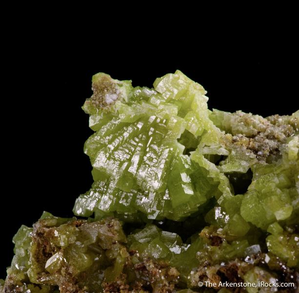 This is a Pyromorphite from San Andres Mine, Espiel, Cordoba, Andalusia, Spain. A very colorful, small cabinet cluster of neon-apple-green, translucent Pyromorphite prisms with delectable wet-look luster from the San Andres Mine of Spain.Data last checked on 28th Jan 2026 - specimen may no longer be available
