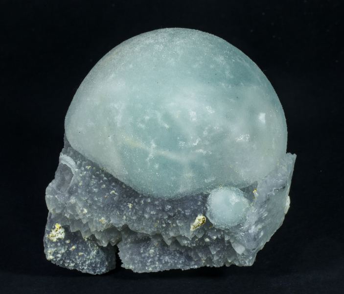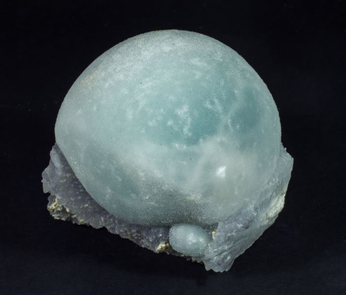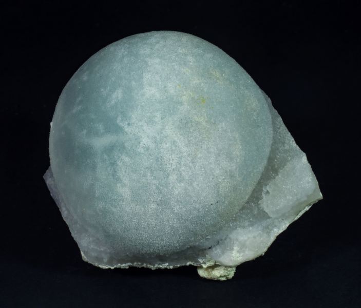 Complete sphere of microcrystalline Quartz, pseudomorph after a spheroidal Fluorite, blue-green in color, on a Quartz matrix. Unlike any other we have seen before.Anxi, Quanzhou Prefecture, Fujian Province China (2017)