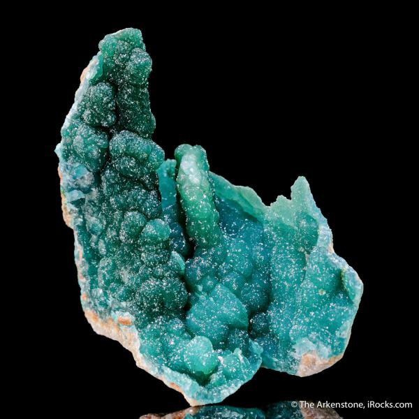This is a Adamite var. Cuprian from Hilarion Mine, Lavrion Mining Dist., Lavreotiki, Attica, Greece. This is a particularly elegant example of the richly colored, intense green-blue adamite specimens that came out a few years ago (perhaps 2020-21) from the famous Laurium mining district in Greece.Data last checked on 28th Jan 2026 - specimen may no longer be available