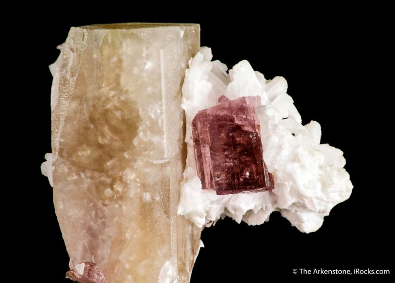 This is a Danburite with Tourmaline and Stilbite from Malkhan Chikoy, Chitinskaya Oblast, Transbaikal, Eastern Siberia, Russia. For something completely different, this was sure a head-scratcher here when we unpacked the collection of Kurt Hefendehl - a pegmatite-origin danburite crystal not only with tourmaline, but also with stilbite!Data last checked on 3rd Feb 2026 - specimen may no longer be available