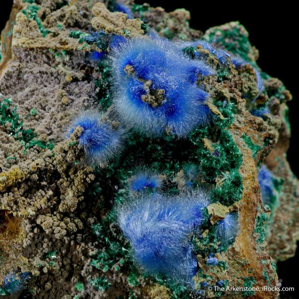 This is a Cyanotrichite with Brochantite from Grandview Mine, Grandview Mining Dist., Coconino Co., Arizona, USA. A very fine and rare small cabinet specimen of electric blue Cyanotrichite from the Grandview Mine in Arizona.Data last checked on 3rd Feb 2026 - specimen may no longer be available