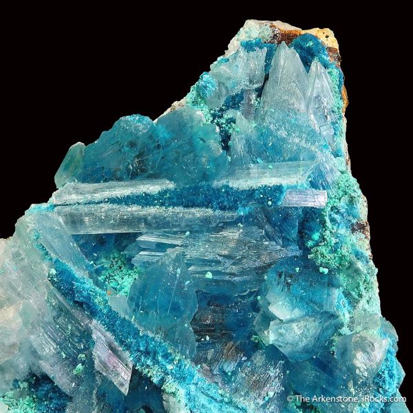 Conichalcite ps. Azurite with Azurite, and Calcite