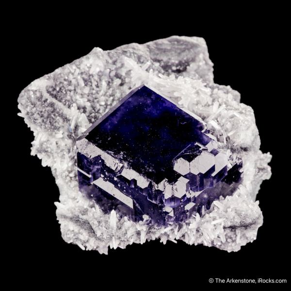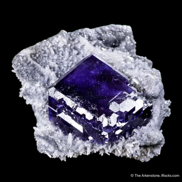 This is a Fluorite on Quartz from Xia Yang Mine, Xia Yang city, Yongchun Co., Quanzhou, Fujian, China. A shocking purple crystal, 3 x 2.7 x 2 cm, sits perched nicely on contrasting quartz matrix.Data last checked on 28th Jan 2026
