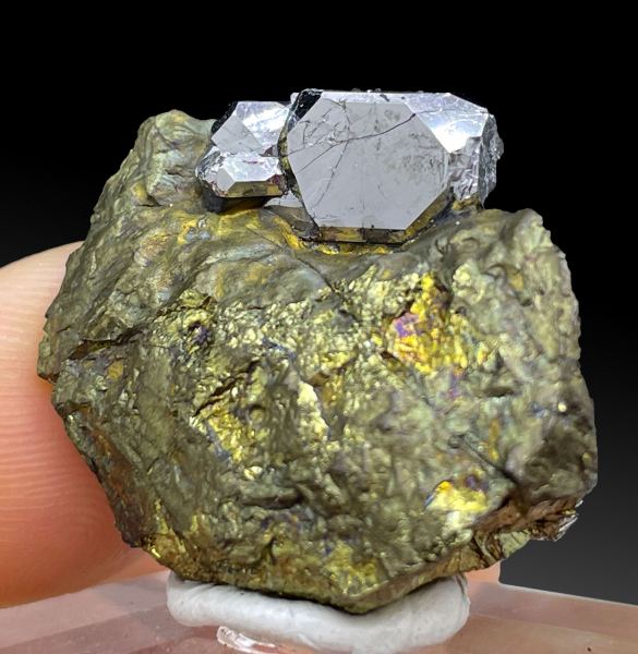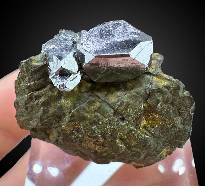 Great specimen with sharp and very lustrous crystals of rare platinum mineral - sperrylite, on matrix. Top luster.;From: Spirifer Minerals