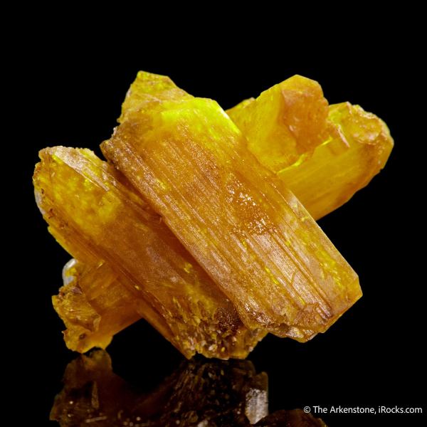 This is a Legrandite from Aztec Sun Pocket, Ojuela Mine, Mapimí, Durango, Mexico. Hot lemon yellow, translucent crystals to 2.4 and 2 cm in length form a thick, appealing cluster of the gorgeous and rare mineral, Legrandite, from Ojuela Mine.Data last checked on 28th Jan 2026 - specimen may no longer be available