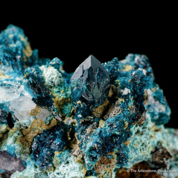 This is a Veszelyite, Dongchuanite on Molybdenite from Sanguozhuang, Dongchuan District, Kunming, Yunnan, China. A very rich small miniature with deep azure blue veszelyite crystals sticking out every which way , all over, and one particularly sharp 7mm crystal !Data last checked on 16th Jan 2026