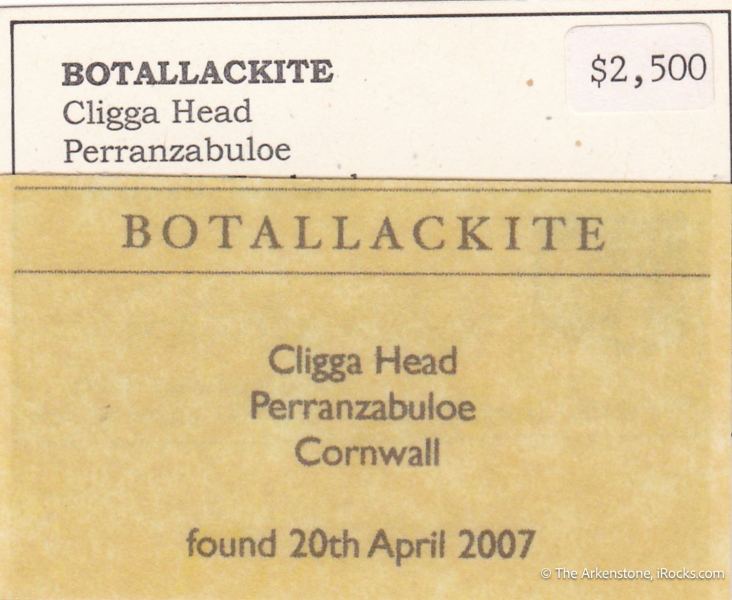 This is a Botallackite from Cligga Head, Perranporth, Perranzabuloe, Cornwall, England, UK. A very rare example of this amazingly uncommon and beautiful secondary copper mineral, species, from the type locality region (if not the exact mine).Data last checked on 17th Feb 2026 - specimen may no longer be available