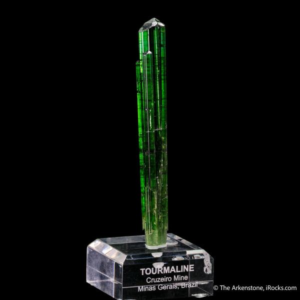 This is a Tourmaline from Cruzeiro Mine, São José da Safira, Minas Gerais, Brazil. A classic pure green tourmaline from the Cruzeiro, where most of this material, with such consistent color and brilliant clarity inside, was sent for cutting.Data last checked on 28th Jan 2026 - specimen may no longer be available