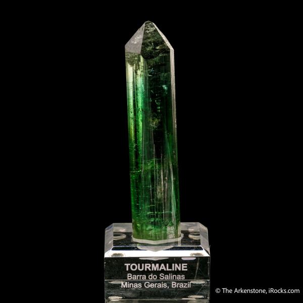 This is a Tourmaline from Barra do Salinas Dist., Coronel Murta, Minas Gerais, Brazil. A pleasing and brilliantly lustrous, gemmy, transparent crystal with a unique green hue to it.Data last checked on 1st Feb 2026 - specimen may no longer be available