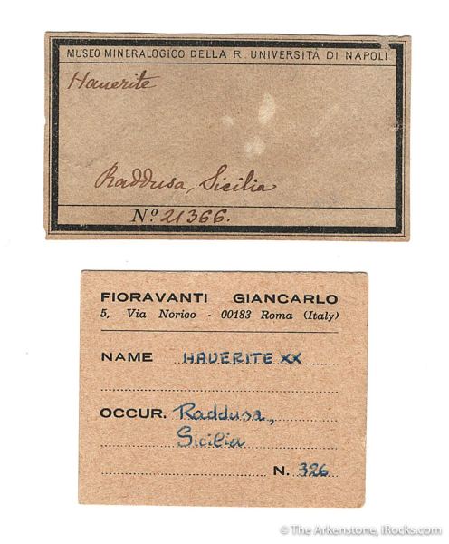 This is a Hauerite (illustrated) from Raddusa, Metropolitan City of Catania, Sicily, Italy. Some minerals found in the 1800s remain rare and unmatched to this day - legendary finds, as it were.Data last checked on 16th Jan 2026 - specimen may no longer be available