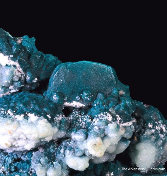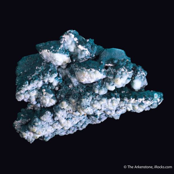 This is a Rosasite ps. Malachite ps. Azurite from Tsumeb Mine, Tsumeb, Oshikoto Region, Namibia. This interesting and teal-blue Tsumeb combination piece is a large cluster of rosasite, intergrown with enveloping drapery of smithsonite or calcite at the base.Data last checked on 28th Jan 2026 - specimen may no longer be available