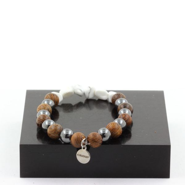 Howlite from USA + Hematite + wood 8 mm beads Bracelet. Length 19-20 cm. Comes in a box pouch. We can make it to your length on request. Made in France in our A Bijoux workshop. Discover more than 1000 models of natural stone bracelets made by the A Bijoux brand with new products every day. Ref. : SKU050884Data last checked on 4th Oct 2025 - specimen may no longer be available