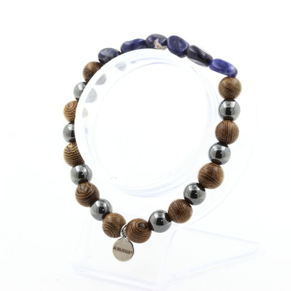 Sodalite from Brazil + Hematite + wood 8 mm beads Bracelet. Length 19-20 cm. Comes in a box pouch. We can make it to your length on request. Made in France in our A Bijoux workshop. Discover more than 1000 models of natural stone bracelets made by the A Bijoux brand with new products every day. Ref. : SKU050888Data last checked on 4th Oct 2025 - specimen may no longer be available