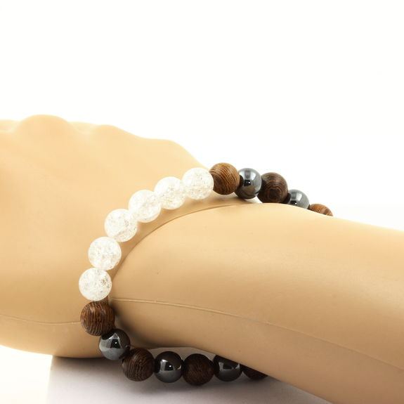 Cracked Quartz from Brazil + Hematite + wood 8 mm beads Bracelet. (Ref: SKU050909)
