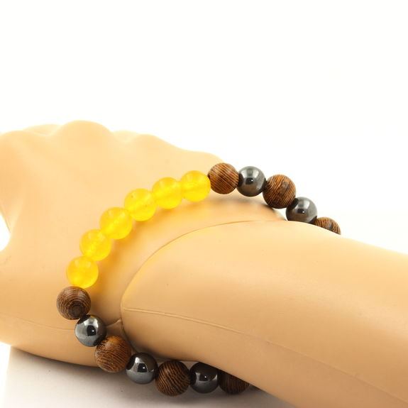 Yellow Agate + Hematite + wood 8 mm beads Bracelet. (Ref: SKU050911)