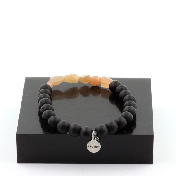 Sunstone from Tanzania + Matte Black Onyx 8 mm beads Bracelet. Length 19-20 cm. Comes in a box pouch. We can make it to your length on request. Made in France in our A Bijoux workshop. Discover more than 1000 models of natural stone bracelets made by the A Bijoux brand with new products every day. Ref. : SKU050459Data last checked on 27th Dec 2025 - specimen may no longer be available