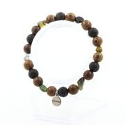 Peridot + Tiger's Eye + Matte Black Onyx + Wood Beads Bracelet 8 mm.