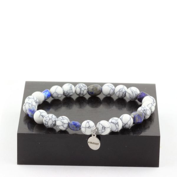 Lapis Lazuli from Pakistan + Howlite 8 mm beads Bracelet. Length 19-20 cm. Comes in a box pouch. We can make it to your length on request. Made in France in our A Bijoux workshop. Discover more than 1000 models of natural stone bracelets made by the A Bijoux brand with new products every day. Ref. : SKU050794Data last checked on 18th Jan 2026 - specimen may no longer be available