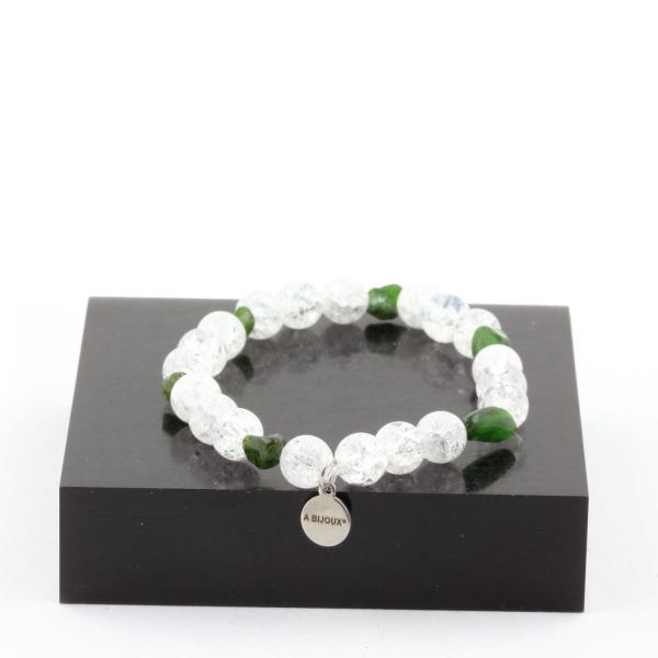 Diopside from Brazil + Cracked Quartz from Brazil 8 mm beads Bracelet. Length 19-20 cm. Comes in a box pouch. We can make it to your length on request. Made in France in our A Bijoux workshop. Discover more than 1000 models of natural stone bracelets made by the A Bijoux brand with new products every day. Ref. : SKU050800Data last checked on 22nd Jan 2026 - specimen may no longer be available
