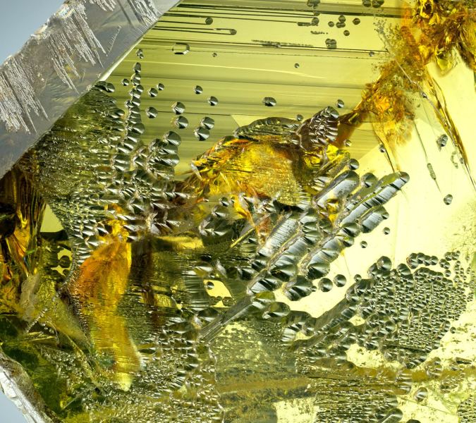 Fosterite var. Peridot with Ludwigite inclusions