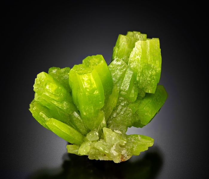 This is a Pyromorphite from Daoping Mine, Gongcheng Co., Guilin, Guangxi, China. A three-dimensional cluster of pyromorphite from this classic locality, of the juiciest and most pleasing apple-green color.Data last checked on 28th Jan 2026 - specimen may no longer be available