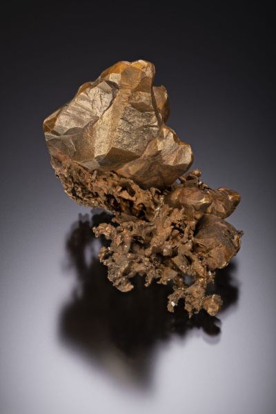 This is a Copper (unique crystal style) from Mass Mine, Mass City, Ontonagon Co., Michigan, USA. This gorgeous miniature is a very antique style with perfect patina, and is a complete-all-around miniature.Data last checked on 9th Feb 2026