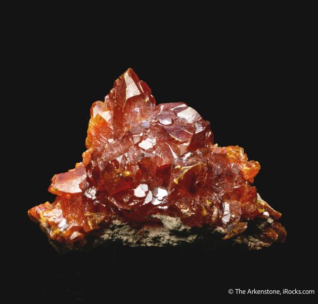 This is a Orpiment from Quiruvilca Mine, Quiruvilca Dist., Santiago de Chuco Prov., La Libertad, Peru. A lustrous, deep orange-fire-red cluster of orpiment from a notable find of the 1980s, in Peru.Data last checked on 17th Feb 2026 - specimen may no longer be available