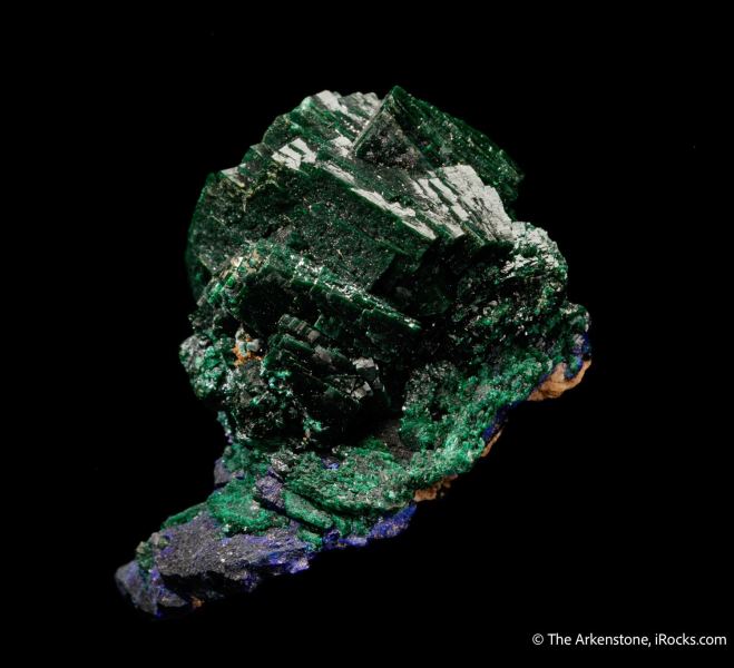 This is a Malachite with Azurite from Tsumeb Mine, Tsumeb, Oshikoto Region, Namibia. Azurite is one of Tsumeb's signature species, and the instantly recognizable Malachite ps Azurite combination occurs worldwide.Data last checked on 17th Feb 2026 - specimen may no longer be available