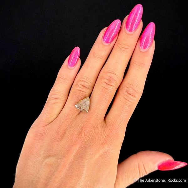 This is a Diamond (macle twinned) from Argyle Diamond Mine, Wyndham-East Kimberley Shire, Western Australia, Australia. This sharp, well-defined macle-twinned diamond is a textbook and full-sized competition-level thumbnail specimen, showcasing classic form and symmetry.Data last checked on 28th Jan 2026 - specimen may no longer be available
