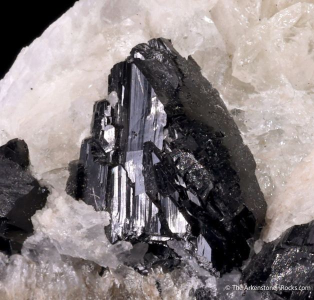 This is a Babingtonite on Calcite from Lane & Son Traprock Quarries, Westfield, Hampden Co., Massachusetts, USA. People often forget that the New Jersey quarries actually produced some world class minerals!Data last checked on 1st Mar 2026