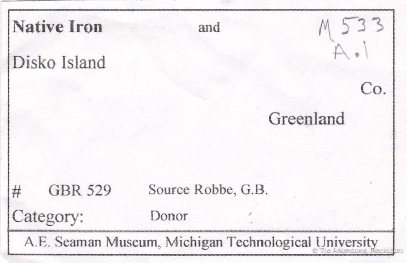 This is a Native Iron from Disko Island, Qeqertalik, Greenland (Type Locality). A true mineral oddity, even if it looks unassuming at first glance: Native Iron is extremely rare in igneous rocks, even though it forms the majority of the earth's core.Data last checked on 3rd Feb 2026 - specimen may no longer be available