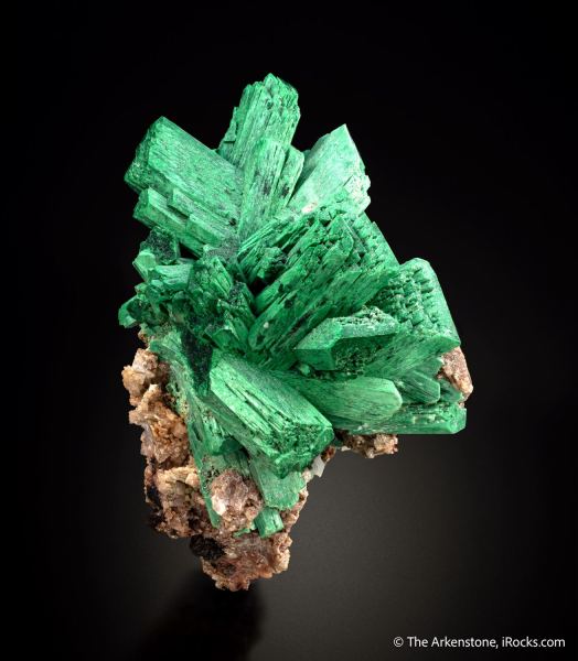 This is a Malachite ps. Baryte (cover piece) from Shangulowé Mine, Kambove, Haut-Katanga, DR Congo. This is a dramatic and sculptural miniature pseudomorph of malachite after baryte from this lesser-known copper-cobalt deposit in the Democratic Republic of the Congo (Zaire).Data last checked on 1st Mar 2026 - specimen may no longer be available
