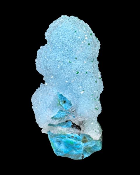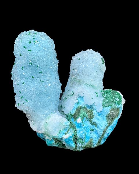 Sparkly specimen of quartz overgrowing chrysocolla and malachite. Cool form.Data last checked on 2nd Nov 2025 - specimen may no longer be available