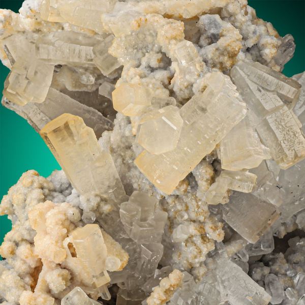 Here we see a wonderful specimen of beautifully crystallized Strontianite from Oberdorf an der Laming, Austria. These are now famous classics, as perfectly developed hexagonal crystals of this species are extremely rare. Strontianite is named after the Scottish west coast village of Strontian, where this species was first found and for which the element strontium is also named. Translucent, colorless, sometimes pale milky to yolk-yellow colored hexagonal prisms up to 1.3 cm size are richly perched throughout a vuggy matrix of thin, intergrown Dolomite plates. The Strontianite prisms are, where possible, double-terminated, which is the case with several crystals. A classic and stunning Strontianite from Oberdorf an der Laming, Austria with excellent aesthetic appeal.Data last checked on 12th Oct 2025 - specimen may no longer be available