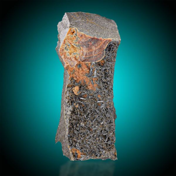 Suredaite is an EXTREMELY RARE lead-tin sulfosalt and named in honor of the Argentine mineralogist Ricardo José Sureda Leston. Here, Suredaite forms silvery to steel-gray, metallic acicula crystals up to 3 mm in size, abundantly scattered across the display face in a jackstraw-like pattern. A top specimen of an extremely rare mineral and from the TYPE LOCALITY which is now virtually unavailable on the market.Data last checked on 16th Oct 2025 - specimen may no longer be available