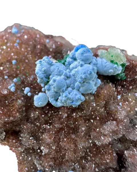 CHRYSOCOLLA psm after MALACHITE psm after AZURITE with QUARTZ - Tenke-Fungurume, Lualaba, DR Congo