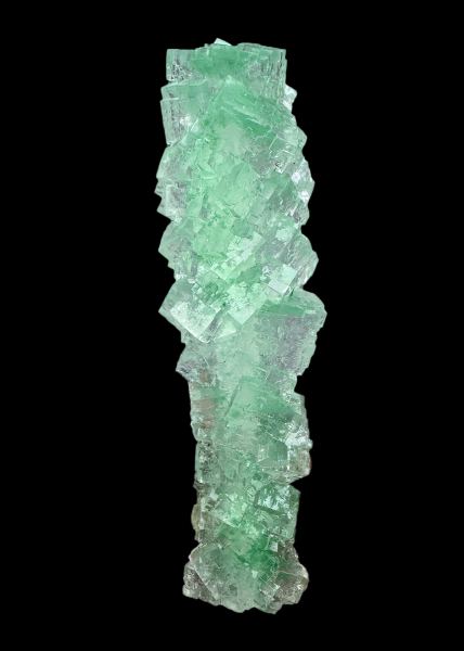 Cool pseudostalactite of translucent and lustrous halite crystals. Green color caused by inclusions of paratacamite. Great form. Fluorescent under UV light.;Data last checked on 3rd Oct 2025