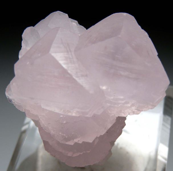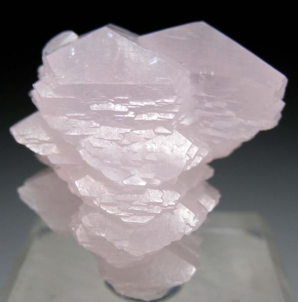 Lenticular pink ManganoCalcite crystals grown horizontally on a single white scalenhedral Calcite crystal. Well crystallized all around. Fine quality aesthetic specimen! Ex. Carl Acosta collection.Data last checked on 2nd Oct 2025 - specimen may no longer be available
