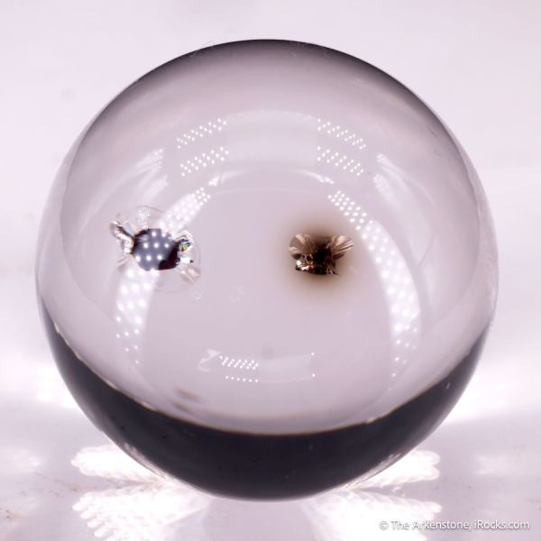 This is a Quartz sphere with Thorite inclusion from Madagascar. A beautiful quartz sphere that is completely transparent and colorless with the exception of a pair of small brownish "apparitions" in the center.Data last checked on 25th Feb 2026 - specimen may no longer be available