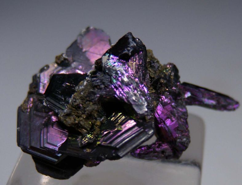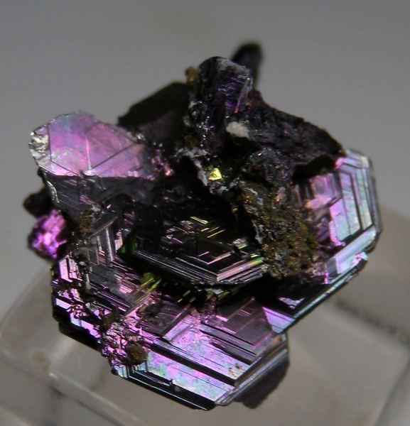 Irridescent combination specimen of Polybasite and Stephanite crystals from a one time find in the 1970s. The specimen features platy groups of Polybasite and elongated crystals of Stephanite with a colorful and attractive purple/blue/green iridescence. Both top and bottom sides photographed. Ex. Neil Levett collection.Data last checked on 2nd Oct 2025 - specimen may no longer be available